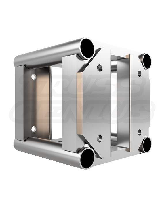 The EVT12S-1FT Aluminum Truss Spacer is a one-foot (304.8 mm) spacer for 12-inch square end-plate bolt truss systems — the longest single spacer in the EVT12S lineup, handling a full 12-inch gap in one component instead of stacking shorter plates. Four 50 mm (1.96 in) OD / 3 mm wall main chord tubes run between two end plates, connected by welded flat gusset panels that hold the 12-inch square box profile across the one-foot span. At 11.46 pounds, this spacer bolts between sections using the standard end-plate connection and adds exactly one foot to the run. Fabricated from 6061-T6 aluminum alloy, this is the spacer that solar racking engineers insert when a rooftop framework needs a one-foot extension to reach the next anchor, that conveyor support builders drop at column transitions to maintain alignment across the gap, that aquarium exhibit fabricators use to fill short spans between scenic panels, and that military shelter teams carry for adjusting deployable frame dimensions to mission-specific equipment footprints.
