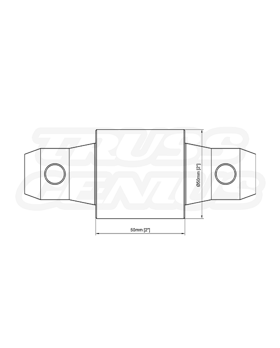 This unit serves as a direct replacement for a standard connector. It inserts into the female receivers of two adjoining truss segments, providing a male connection on both ends. The integrated 50mm collar creates the necessary spacing between the truss chords while maintaining the rigidity and safety of the conical bond.
