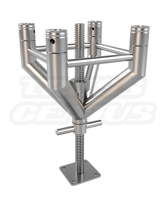 The EVT290S-Spindel is an essential structural accessory designed for EVT290S 290 mm square conical aluminum truss systems. This adjustable leveling spindle (screw jack) is the perfect solution for erecting truss structures on uneven surfaces, such as outdoor festival grounds, sloped sidewalks, or older indoor venues with irregular flooring. By attaching to the bottom of a truss leg, it allows for precise height adjustments to ensure the entire grid or tower remains perfectly level and plumb.